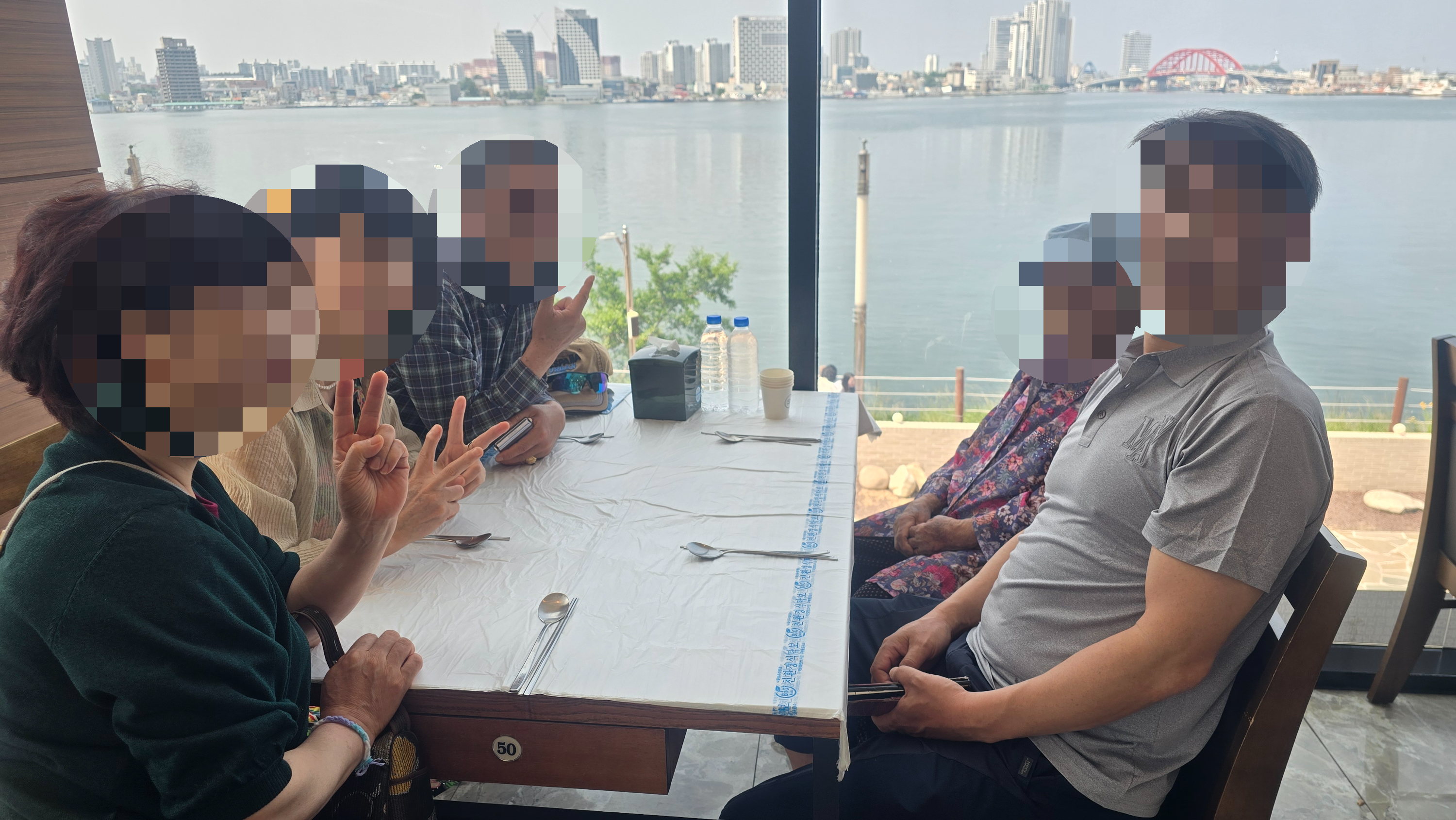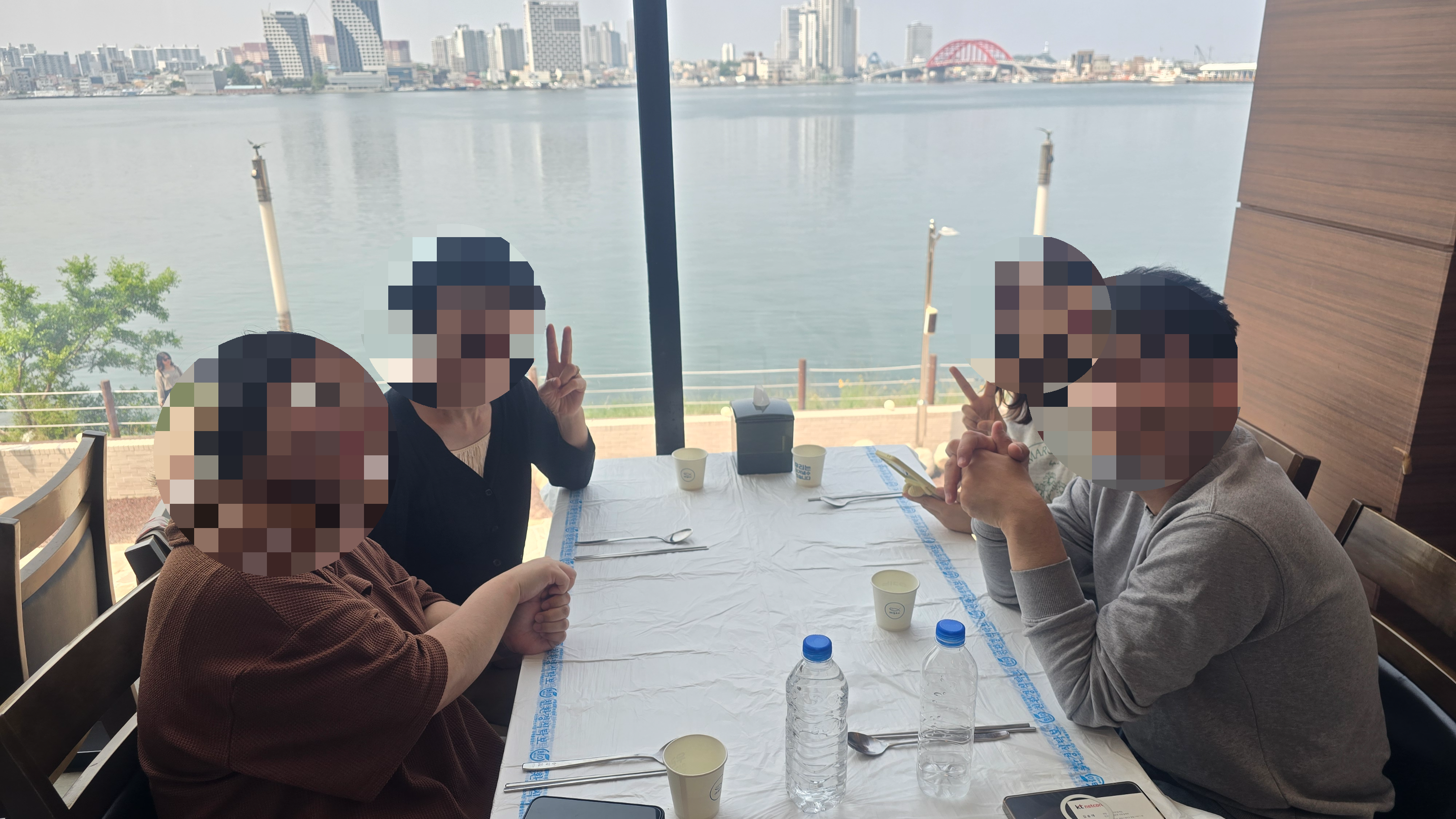 다같이 앉지는 못했지만 창가 자리 확보