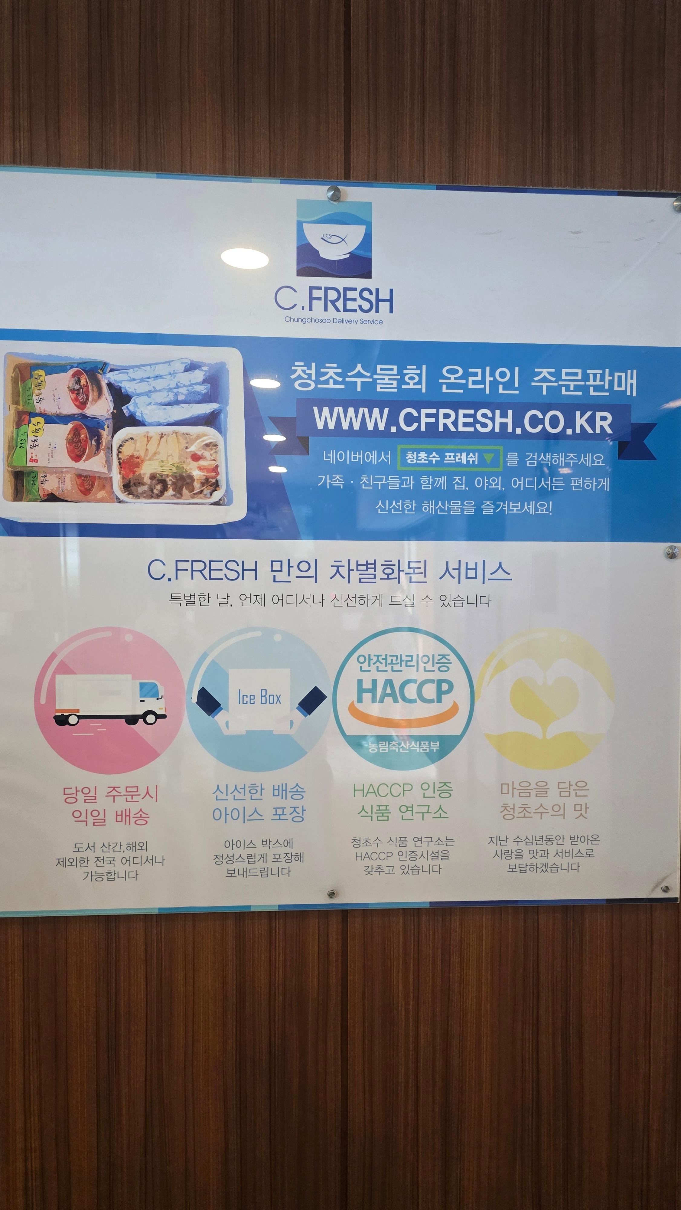 청초수물회 메뉴는 배달 주문이 가능합니다. 네이버에서 청초수 프레쉬를 검색해서 신선한 해산물을 즐길 수 있는데 아이스 포장으로 신선도를 유지하여 배송한다고 하니 직접 방문이 어려우실 경우 주문해서 드셔보시길 바랍니다.