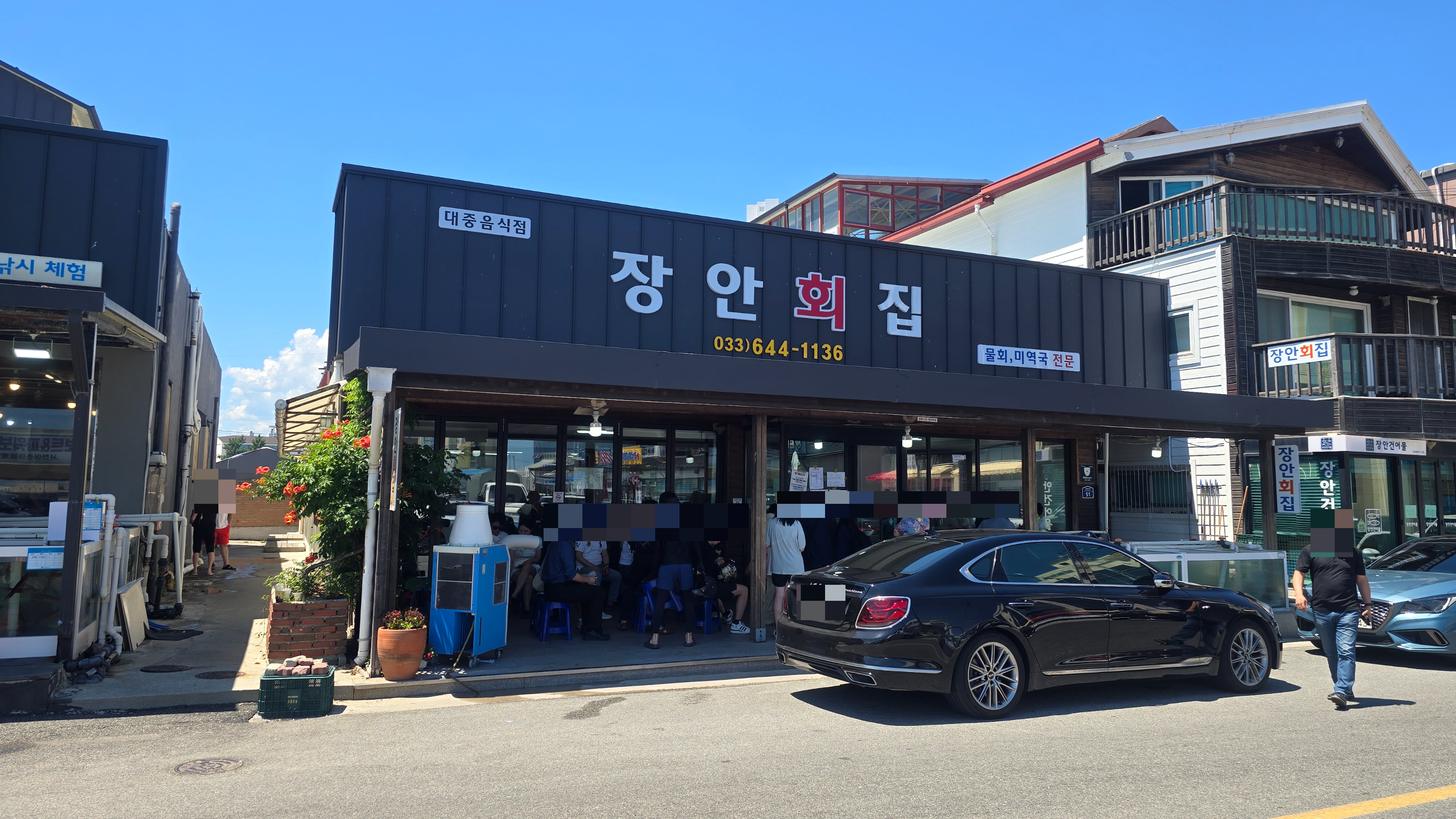 강릉에서 멀지 않은 사천면에 위치한 장안횟집에 다녀오게 되었습니다. 물회의 맛과 신선도가 남다르다는 추천을 받아서 가게 되었습니다. 장안횟집 주변으로 '물회 거리'라 불리우는 물회 전문점들이 많이 있어 솔직히 어딜 가든 무더운 날씨에 시원하고 신선한 물회를 먹을 수 있지만, 줄 서서 웨이팅하고 있는 곳은 장안횟집이 거의 유일했습니다.